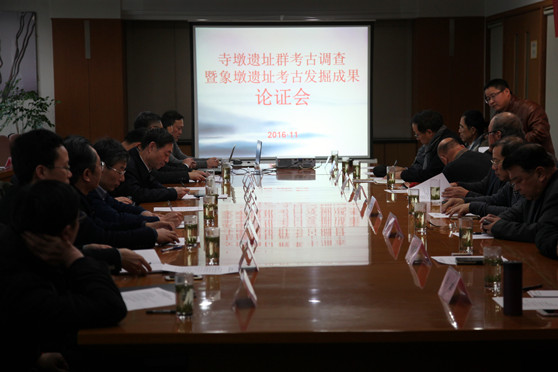 2016年11月26日,江苏省考古研究所、新北区政府、常州市文物局组织考古专家在新北区政府会议室召开“寺墩遗址群考古调查暨象墩遗址群考古发掘成果论证会”。江苏省文物局局长刘谨胜、常州市委常委宣传部长徐光辉、常州市人民政府副秘书长黄建德等省市领导,以及建设单位负责人参加了会议。