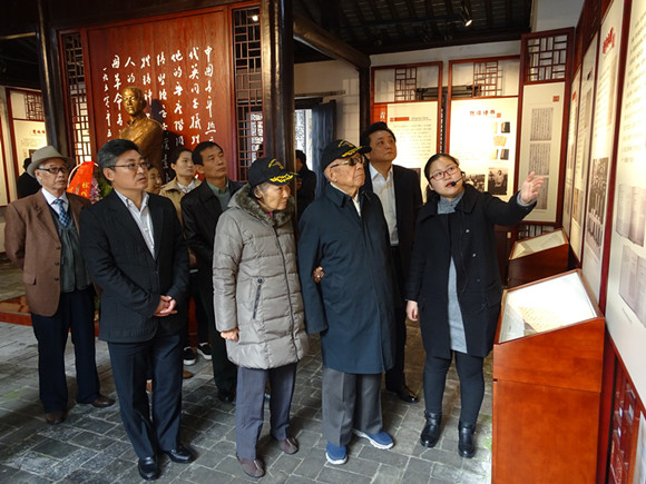 在恽代英铜像前,首长献上花篮,郑重三鞠躬,向革命先辈致敬。而后,在讲解员的引导下,认真聆听恽代英生平事迹,观看纪录片。那段烽火岁月深深的勾起了老首长对军旅生涯、对革命岁月的怀念和感慨,许多曾与恽代英共同战斗的先辈们他都还记忆犹新,如数家珍。