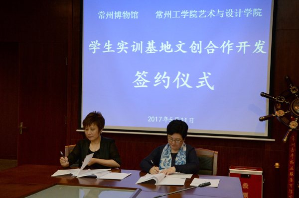 5月11日,常州博物馆与常州工学院艺术与设计学院正式签订了“学生实训基地”合作协议,合力创新馆校共建新模式。常州博物馆作为国家一级博物馆、国家4A级旅游景区和江苏省爱国主义教育基地,立足于区域文化和藏品资源,坚持特色化的发展定位,致力于积累和传播科学知识,弘扬中华优秀传统文化,为社会不断提供多元化、优质的陈列展览、教育服务项目,现有藏品3万多件,年举办展览20余个,社教活动200多场。博物馆依托雄厚的科研力量与馆藏资源,为学生提供实训机会;常工院则依托优秀学生和签约设计师,积极围绕常州博物馆的馆藏资源进行文创产品专题研究及设计,使文物焕发新的生命力。馆校共建模式在底蕴深厚的馆藏文物与鲜活生动的时代创意之间架起了桥梁,为人才培养与文物保护之间共赢发展积聚了后力,在如何“讲好中国故事,让文物以多元的形式活起来”方面作出了积极探索。