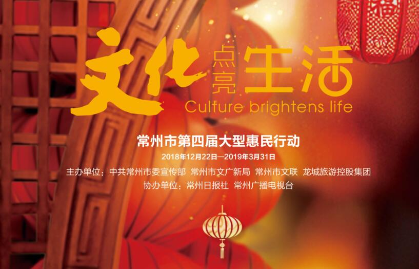 由市委宣传部、市文广新局、市文联、龙城旅游控股集团联合主办,常州日报社、常州广播电视台协办的“文化点亮生活”大型惠民行动是与“社区天天乐”“文化100”齐名的我市文化民生工程三大特色品牌之一,是具有鲜明常州文化标识的特色文化活动。