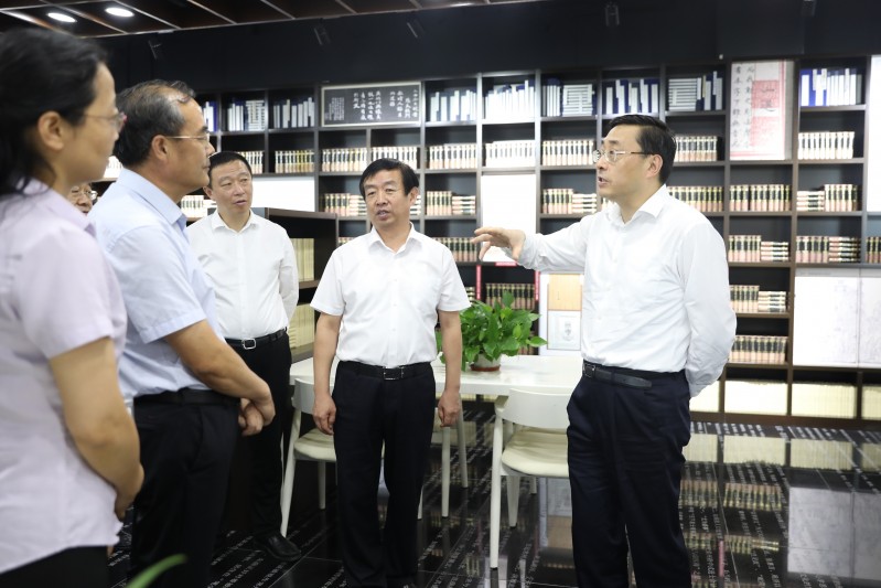 在常州著作馆,费高云详细了解了建馆初衷、藏书分布和对外开放情况。常州著作馆是常州市图书馆实施地方文献保护工作机制的重要产物,根据“避免断层、专家指导、分类保护”的原则孕育而成。在开馆两个月的时间内,得到了图书馆界、各级党政机关、民间藏书家、文史爱好者的青睐。“立足馆藏特色,凸显常州风骨”,借此进行爱国、爱乡教育,进而反哺地方文化研究,是常州著作馆未来的发展目标。
