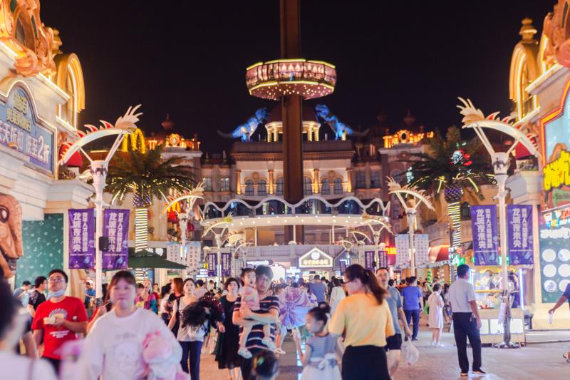经过多年来对夜经济产业的探索,恐龙园不断丰富夜间产品,挖掘夜间消费潜力,将夜经济形态延伸至“游、食、购、娱、宿、体、展、演”等复合型的夜经济产业链,打造了集合夜间旅游产品-中华恐龙园和侏罗纪水世界、夜间娱乐产品-恐龙人俱乐部、夜间演艺剧目(小剧场)-《迈乐的否冷》(恐龙人燃剧场)、夜间恐龙主题住宿产品-恐龙人俱乐部酒店、恐龙馆奇妙夜等形式丰富的夜间文旅产品,有效实现了文旅商有机联动,实现经济效益最大化。