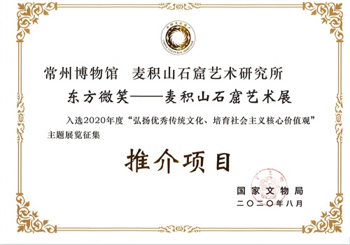 “东方微笑——麦积山石窟艺术展”获国家文物局2020年度 “弘扬中华优秀传统文化、培育社会主义核心价值观”主题展览推介项目