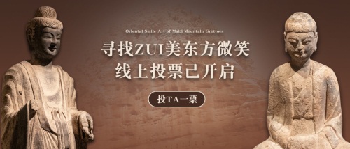 此次特展的定位是全面展示麦积山石窟艺术,策展团队留意到麦积山石窟的佛教造像大多露出会心的微笑。这微笑突破了佛教造像追求庄严、肃穆的仪轨,将普通人的情感投射到了神明身上,将人性的光辉照进了佛陀的世界,洋溢着东方哲学与智慧的光芒。它也是佛教艺术中国化、世俗化的集中体现。因此将“东方微笑”这个具备麦积山石窟艺术文化特质的符号作为展览主题比较合适。