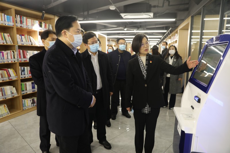 1月22日上午,市长陈金虎一行调研我局民生实事重点项目——秋白书苑建设情况,调研组实地考察了秋白书苑湖塘镇中心馆,详细了解了书苑运行开放、文化活动开展情况和疫情防控工作。