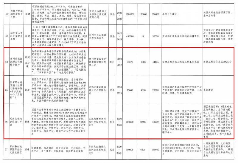 近日,江苏省文化和旅游厅公布了2021年省级重点文化和旅游产业项目,涉及13地市共70个项目,项目计划总投资2858亿元, 2021年计划投资488亿元。其中,我市8个项目入选,包括常州青果巷历史文化街区1个竣工项目、溧阳曹山未来城(一期)、常州纺织博览园、常州焦溪古镇和常州季子文商旅农综合体等4个在建项目和常州恐龙园沉浸式体验综合提升、江南环球港五期(丝绸之路海洋馆+中沙文旅中心“月亮船”)、常州文化内容进出口平台等3个新开工项目,入选项目数居全省第二位。