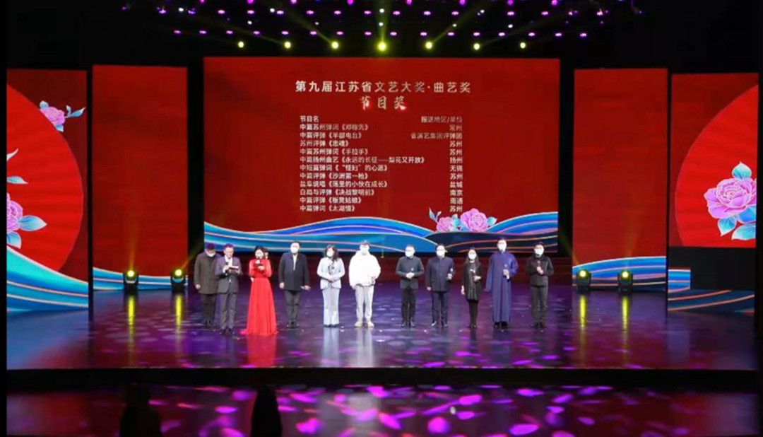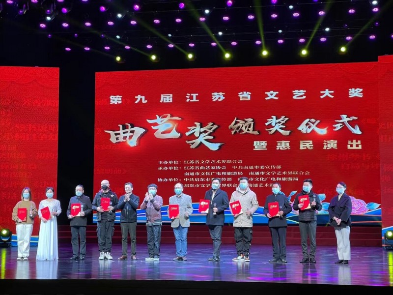 12月22日晚,第九届江苏省文艺大奖﹒曲艺奖颁奖仪式暨惠民演出在南通市启东保利大剧院隆重举行。“江苏省文艺大奖﹒曲艺奖”是全省曲艺专业最高奖项,每两年评选一次。该奖项与中国曲艺最高奖“牡丹奖”相衔接,对江苏曲艺创作和人才培养有着积极的推动作用。
