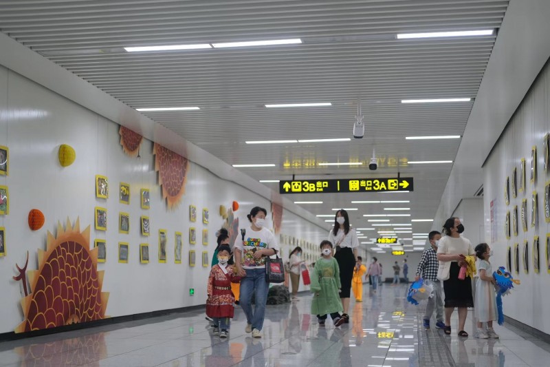 5月29日,“欣欣向龙”——不一样的儿童节在常州地铁1号线新龙站开展,吸引了众多的市民前往看展。此次展览是常州市文化馆首次与常州地铁联动,让儿童画展走出场馆,走进文化驿站。画展内容围绕常州非物质文化遗产、常州水乡古建筑、常州标志性建筑、常州地方特产、常州方言新潮玩、常州美食等内容展开。主办方还为小书画家们拍摄了视频,让视频“发声”、艺术作品“发声”、艺术活动“发声”、公共装置“发声”,让更多的百姓看到新生代的未来,千姿百态的未来。
