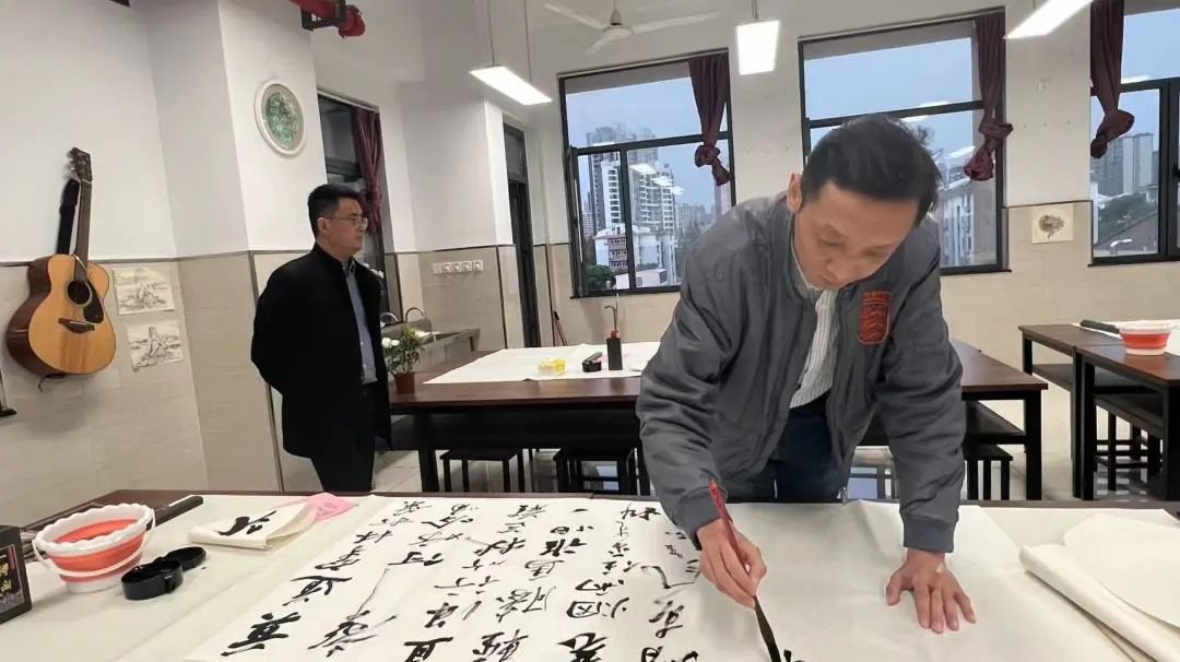 下半年以来常州画院继续推出专业性、专家型的党员志愿者服务,画院党支部支委会成员、画师李啸东和芮新丰带头,开展书画进社区、进校园常态化活动。