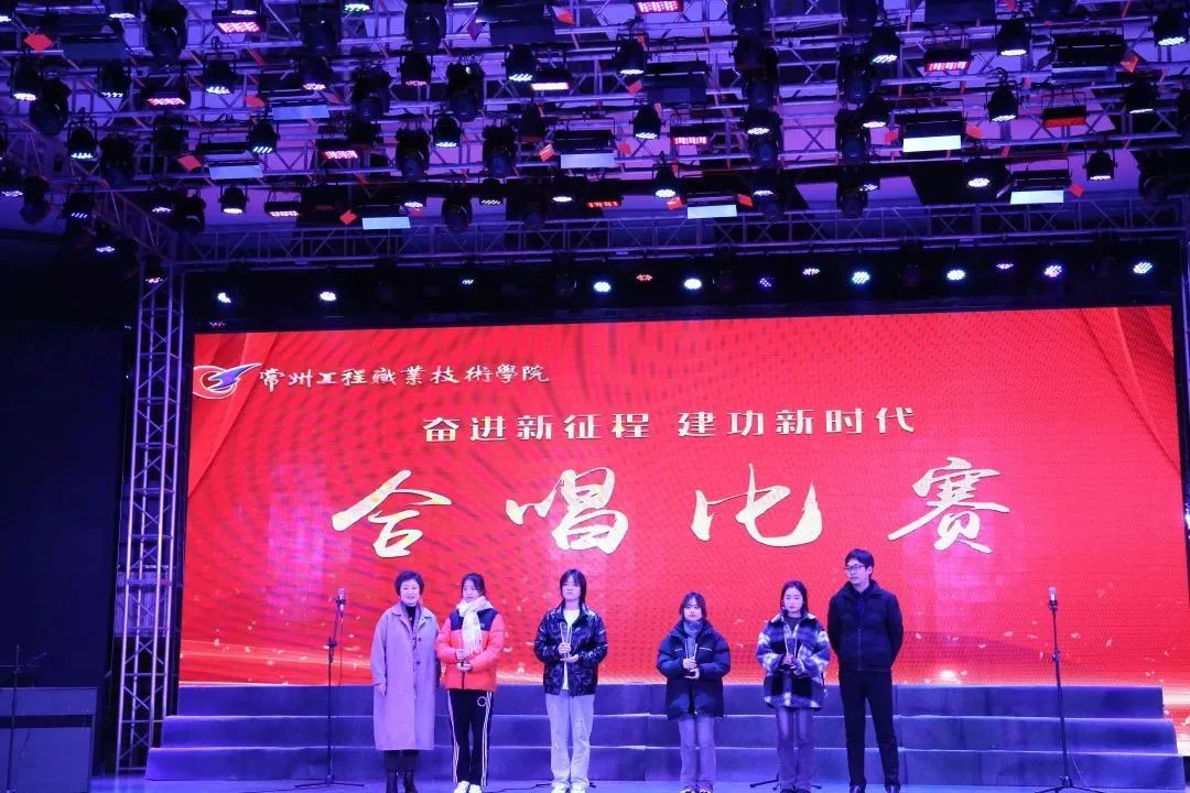 晚上18:30合唱比赛开始。校领导及300余名学生观看比赛,比赛评委由常州市文化馆相关领导和专家担任。