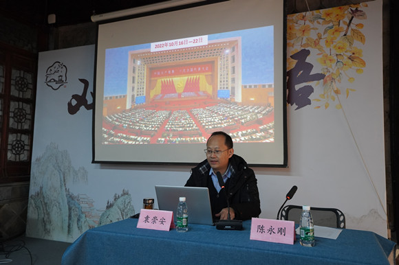 为深入学习贯彻党的二十大精神,增强文保中心职工的文化自信和历史担当,12月9日下午,市文保中心邀请市委党校机关党委专职副书记袁崇安老师,以“坚持文化自信,建设文化强国”为题,为中心全体职工做了专题党课辅导。