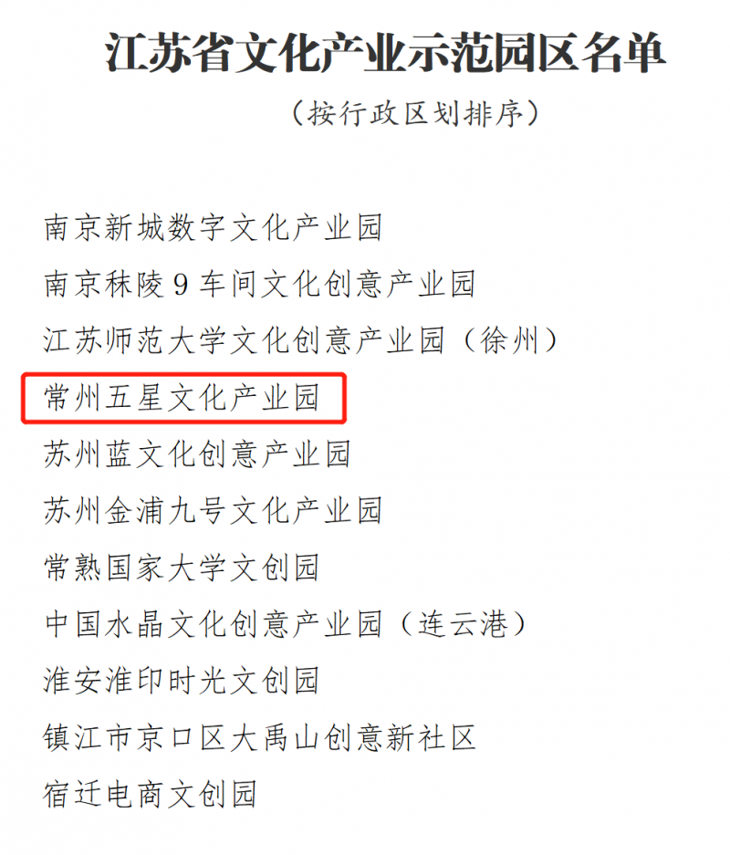 12月29日,江苏省文化和旅游厅公布了2022年江苏省文化产业示范园区名单,我市五星文化产业园成功入选,成为我市第三家省级文化产业示范园区。