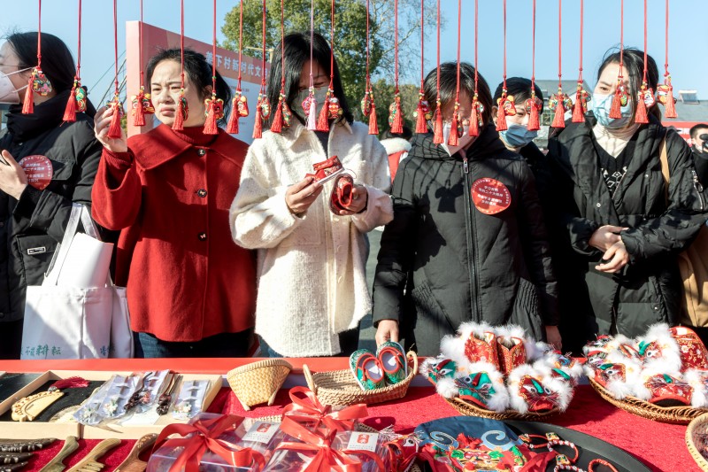 此次集中服务活动由常州市文广旅局副局长严旭华带队,常州梳篦、常州萝卜干、虎头鞋、小杏鱼圆、上黄羊糕、溧阳风鹅、常州梨膏糖制、堆花糕团、孟河中药香囊、常州大麻糕等多项非遗项目现场展示,吸引了众多村民驻足品尝、观赏。