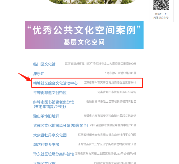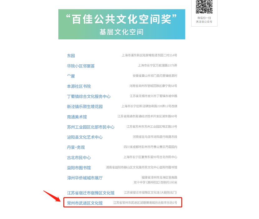 3月17日获悉,常州市4个空间在由文化和旅游部公共服务司指导、上海市文化和旅游局牵头举办的“2022长三角及全国部分省市最美公共文化空间大赛”中成功获奖,喜得佳绩。其中,常州市武进区文化馆获“百佳公共文化空间奖”,横塘社区综合文化活动中心、春江楠木厅、常州汉江路特色街区提升改造获“优秀公共文化空间案例奖”。