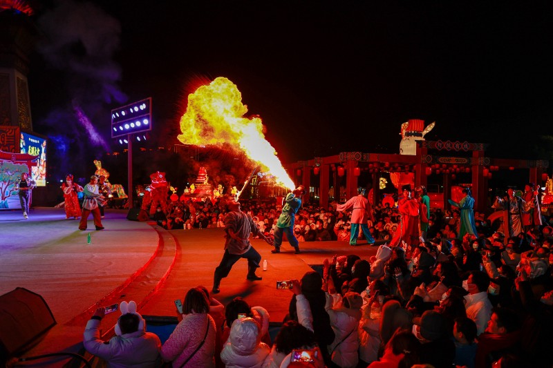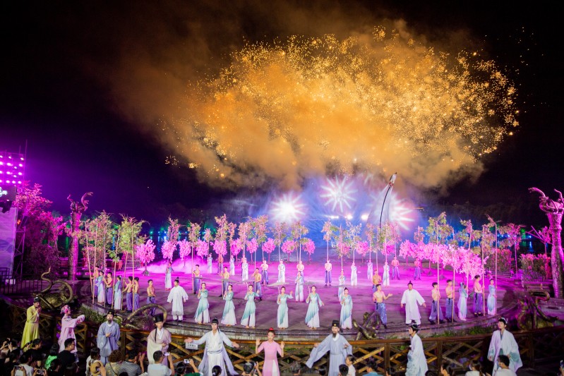 东方盐湖城·道天下景区将魏晋古风建筑与沉浸式国风体验、王牌演艺互动以及特色主题酒店等相结合,推出大型实景水幕秀演《逍遥游》等国风项目,将夜游、夜市、夜秀、夜食、夜宿、夜展等“国风”夜游项目作为拳头产品打造江南独有的夜游经济模式。