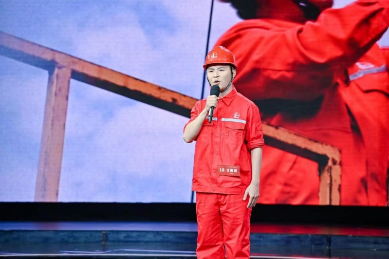 决赛现场高手过招,第17号选手实力强劲,评委打出现场最高分的情况下,第18号上场的甘俊锐顶住压力,身着石油工人工作服,迈着坚实有力的步伐走上舞台。他以《礼物》为题,从主人公“徒弟”的视角,深情讲述了全国劳动模范、江苏时代楷模田明38年如一日,扎根基层、创新钻研,舍小家为大家的感人故事,展现了新时代石油工人的精神风貌。独特的视角、精彩的讲述、动人的演绎、稳健的台风,给评委老师留下了深刻的印象,赢得现场观众阵阵掌声,最终逆风翻盘,荣获“金牌讲解员”称号。在点评环节,甘俊锐新颖独特的表现方式、真情实意的情感流露受到评委多次点名表扬。