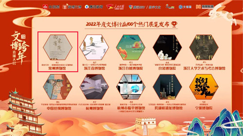 “南宋芳茂——周塘桥南宋墓出土文物特展”则入选了由央视频、微博文博、腾讯新闻、人民文博、腾讯SSV数字文化实验室、雅昌艺术网、文博圈、博展联盟联合发起的2022文博跨年直播大会上公布的年度100个热门展览。候选展览来自观众、馆方、专家推荐和网络搜索,结合展览主题、行业关注、搜索热度、网络传播等维度,最终精选出了2022年度100个博物馆热门展览。