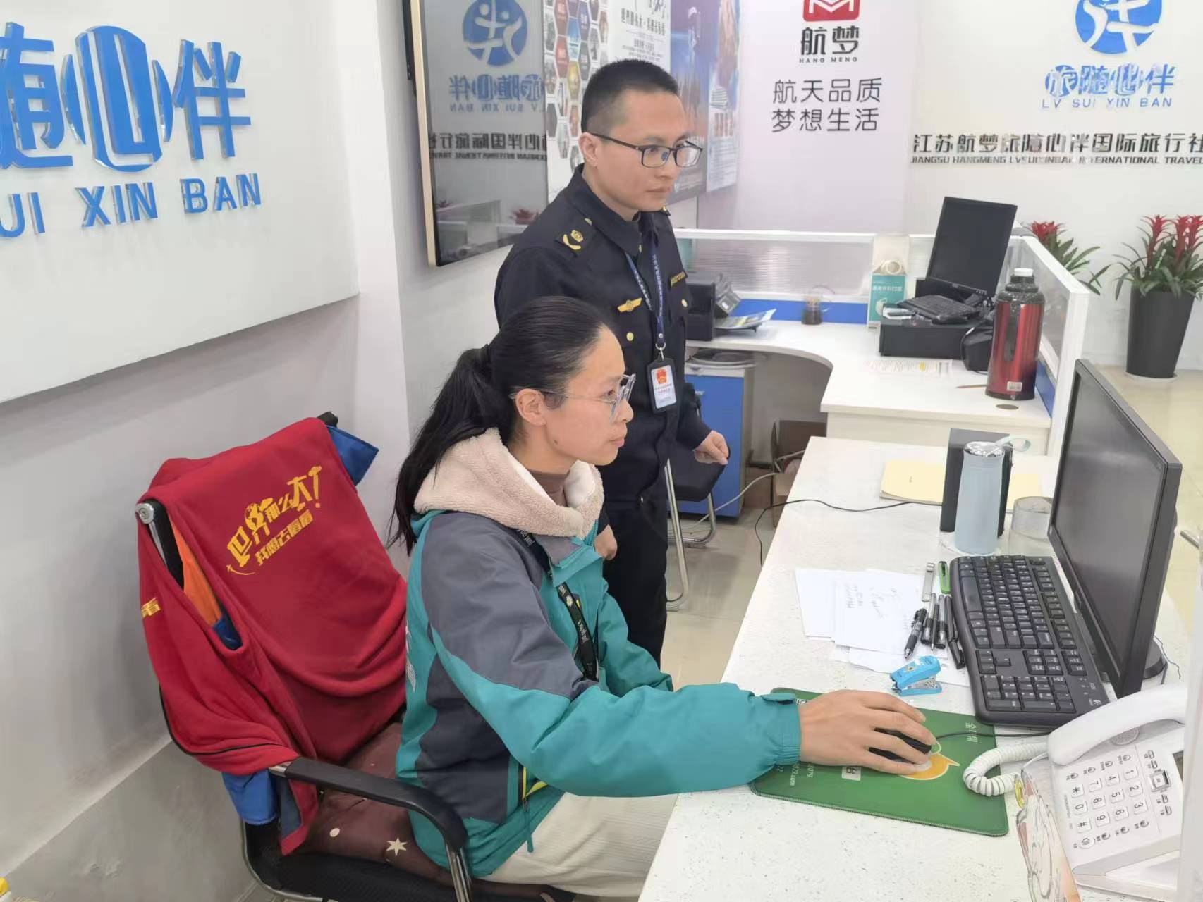 3月28日下午,执法人员来到常州青旅、宜趣游、航梦旅随心伴等旅行社,通过查验合同、座谈交流等方式,对旅游包车的客运经营许可、道路运输证、包车合同、导游执业资质等问题进行问询与查看,督促相关人员切实做好包车安全工作,履行好主体责任。