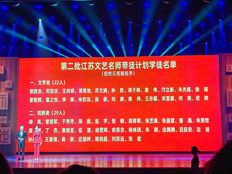 江苏文艺 “名师带徒计划”是江苏建设文化强省、构筑文艺精品创作高地的重要工程,是建强文艺苏军、推进江苏文化人才高质量发展的重要举措,旨在通过“师徒传承”的方式,推进江苏文艺青蓝相继、薪火相传。