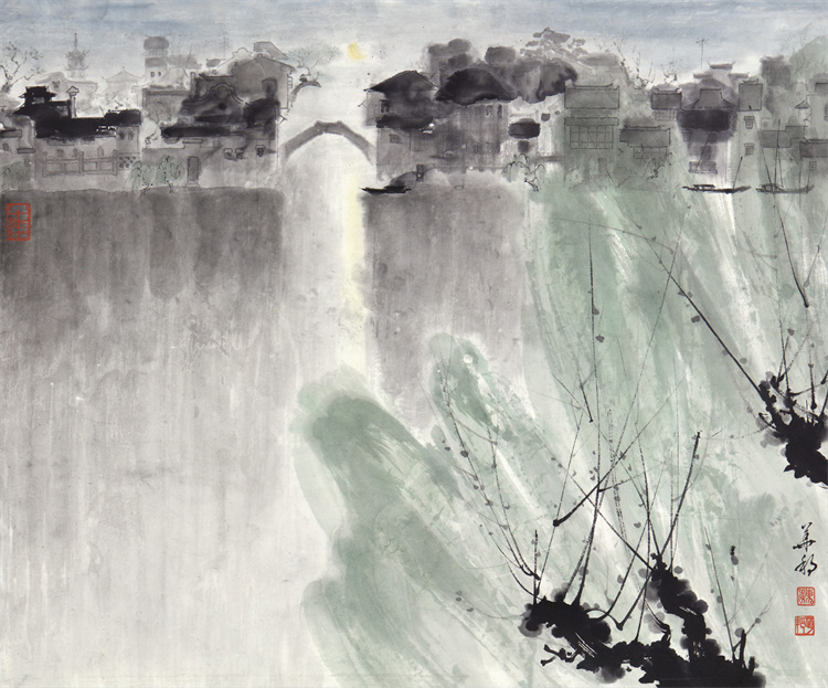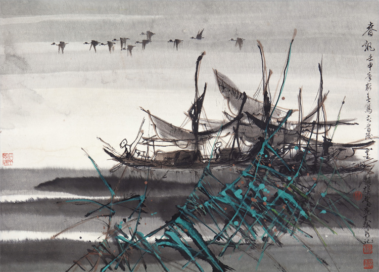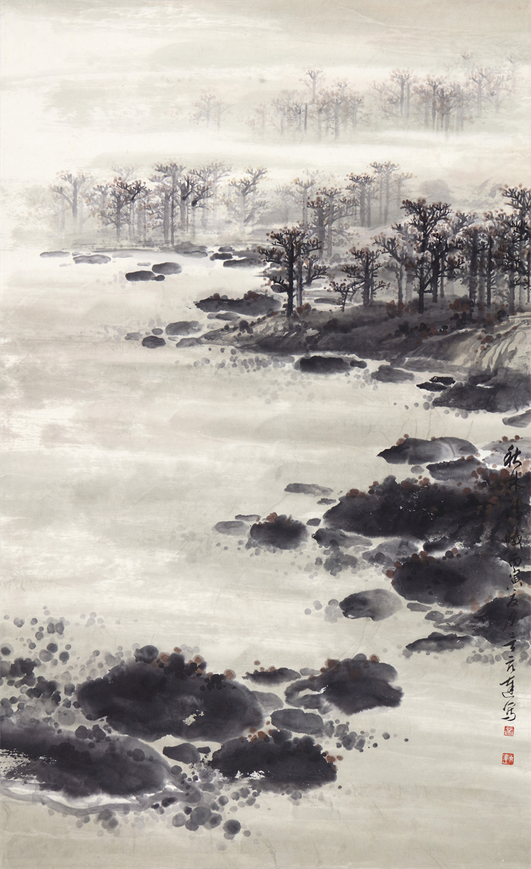 周俊炜 峡江行舟图 79cm×35cm 1988
