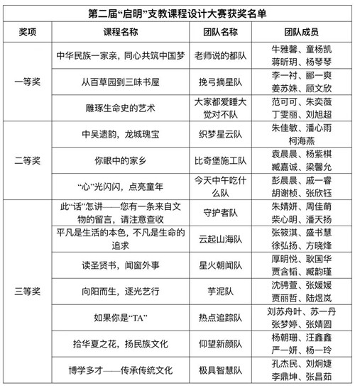 4月27日,第二届“启明”支教课程设计大赛作为“5·18国际博物馆日”高校联动系列活动的首秀在常州大学拉开帷幕,13支队伍大放异彩,最终角逐出一等奖3个、二等奖3个、三等奖7个。参加决赛的队伍是从58支初赛队伍中脱颖而出的佼佼者。他们结合乡村教育的现状、问题,将思想政治教育、正确的价值观引导融入中华文化、传统文化、民族关系、地方文化、博物馆文化、时事热点等丰富的选题之中,通过专业的课程设计、丰富的教学形式,开阔学生眼界,加强学生的德育、美育品质,弘扬和培育民族精神。