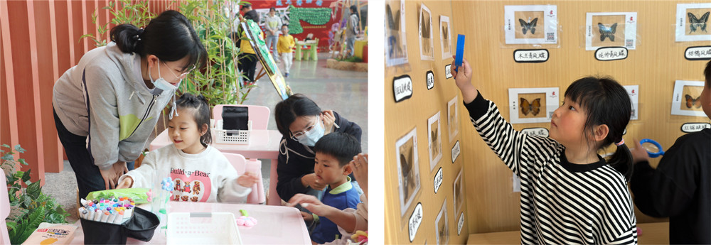 5月6日-11日,由常州博物馆主办、常州市北幼教育集团承办的“博物纳多彩 创想伴童年”课程展示活动在常州博物馆准时开启。本次展示内容分为香草计划、蝴蝶你好、恐龙计划、碰瓷计划四个微展,通过聆听有趣的故事、感受创意游戏的意义、学习自然探究的方法,带领孩子们体验成长的乐趣。伴随着孩子们的疑问,比如香菜为什么有特别的气味?为什么蝴蝶翅膀上面有点点?蝴蝶为什么是彩色的?蝴蝶的一生都有什么样的变化?这是什么龙?它们喜欢吃什么?在博物馆开展探究性学习和游戏型体验,做一做香包、泡一壶香茶、拼一个《蝴蝶的一生》模型、绘制多彩的“恐龙蛋”、体验一次扎染......本次展示活动吸引了众多家长和孩子参与,是常州博物馆和常州市北幼教育集团在前瞻性项目实施过程中共建博物课程的初次尝试。以静态作品展和互动分享展两种方式呈现,通过一静一动展现了幼儿、家长、教师在博物课程中的所见、所闻和所得,进一步激发了教师的课程建设能力,锻炼了幼儿乐享共享、互相协作、大胆表达表现的能力。5月17-18日,在北环幼儿园园区,孩子们走进场地更大、互动装置更多的展区开展游戏化学习,持续感受博物课程的美好。