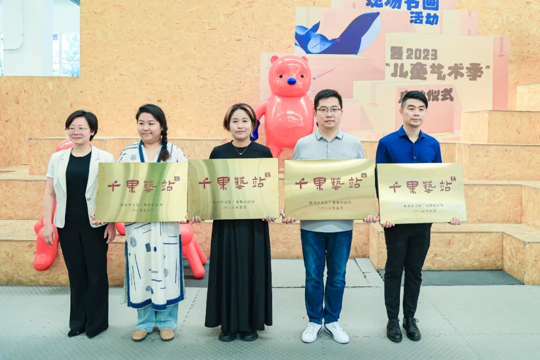 拓展文化空间,品尝文化盛宴,常州市文化广电和旅游局副局长严旭华为首批四家“千果艺站”授牌:迪诺水镇、三井街道汉江路社区、棉仓(三晶店)、羊萝卜艺术牧场。