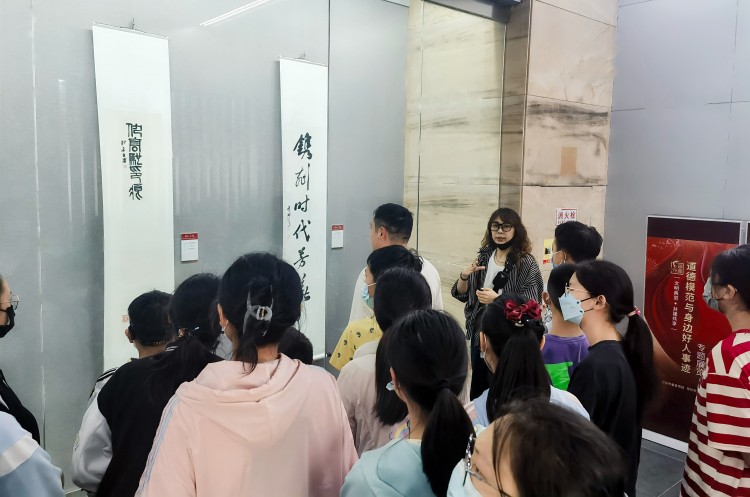 基于“双减”背景,新课程标准践行之际,为进一步做好“同心育人”教育教学工作,弘扬美育精神,培养德智体美劳全面发展的社会主义建设者和接班人,6月6日下午,常州市中吴实验学校艺体组教师带领艺术类社团学生走进常州画院,参观了“镌刻时代芳华”——纪念何香凝先生诞辰145周年作品展。常州画院副院长李啸东、创作交流部负责人徐尉刚、专职画师黄响铃围绕艺术核心素养,对展览作品进行了研究性讲解。艺体组的师生们还参观了画院画师的创作室,通过这次校外的书画“课堂”使同学们更加了解传统书画艺术特色,实现了以文化人,以美育人的积极作用。