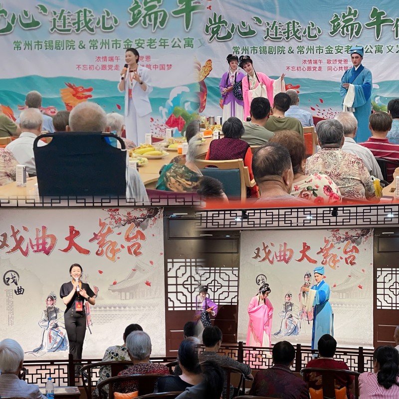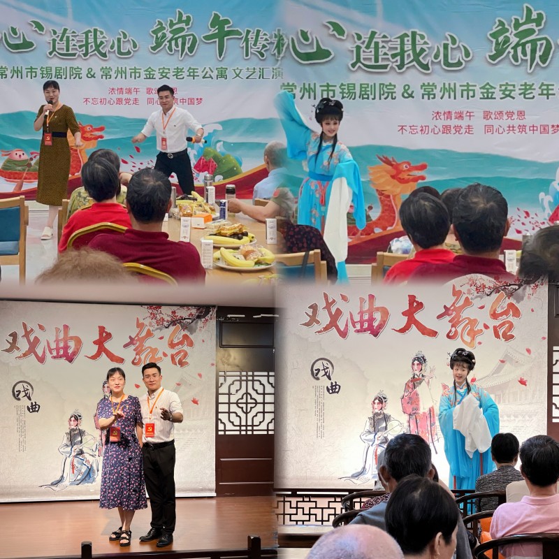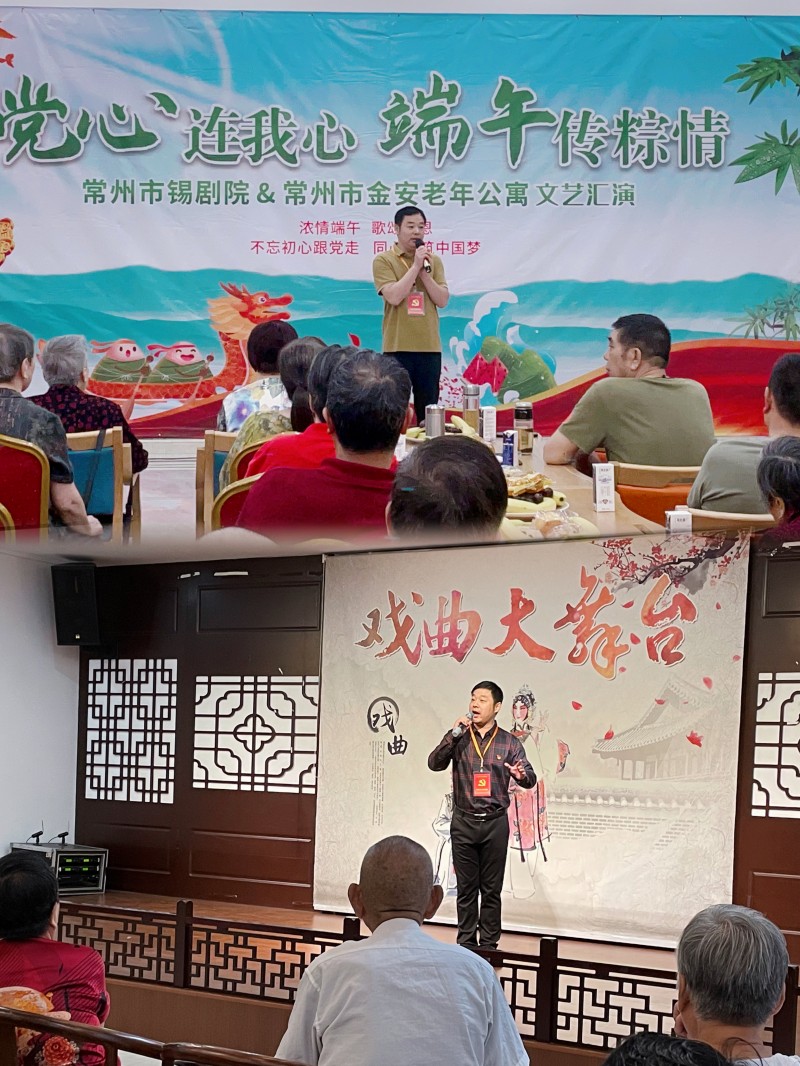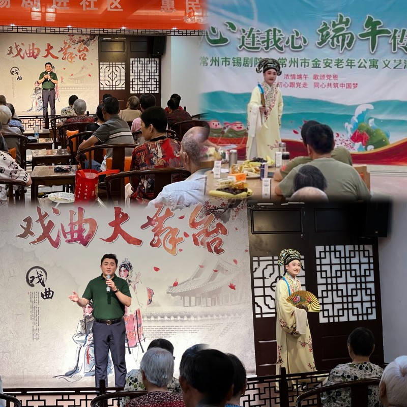 江苏常州市锡剧院党支部于6月18日、20日两天,组织院团全体党员和青年演员们走进常州市金安老年公寓和西林街道东岱村新时代文明实践站,开展“敬老为德,助老为乐”、“锡剧进社区,惠民零距离”义演活动,为群众送上了一场丰盛的文化戏曲大餐,送去了无限的关爱和温暖。