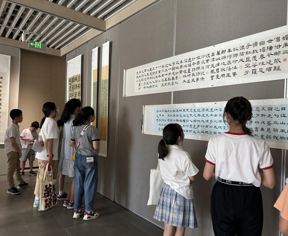本次展览一经展出吸引了众多爱好书法的市民及学生群体前来参观,同学们纷纷驻足于作品前细细欣赏学习,沉浸式感受传统诗词文化的魅力与书法艺术的熏陶。黄仲则的一生虽自负才华横溢,满腔抱负,却怀才不遇,在生活的边缘痛苦挣扎,但他仍然坚持自己的理想,参观后同学们纷纷表示:要向“白袷少年”黄仲则学习,更要用心感悟和传承中华优秀传统文化,守护好常州的精神家园。