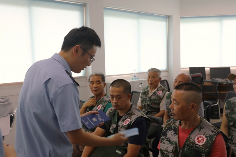 执法人员与8名退伍老兵积极互动,向他们发放“低价旅游需谨慎,看清资质有保障”宣传手册。