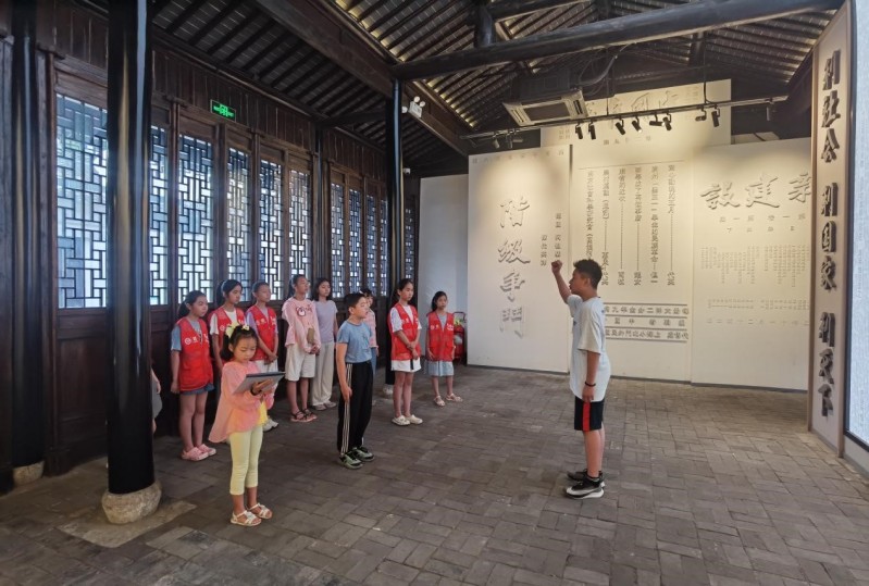 8月8日,新四军江南指挥部纪念馆的红领巾志愿者来到常州三杰纪念馆开展参观研学。瞿秋白纪念馆暑期小志愿者马泽元等10多名小志愿者和讲解员老师一起为新四军江南指挥部纪念馆小志愿者们讲解,赢得了阵阵掌声。参观结束后,两馆小志愿者兴致勃勃地交流志愿服务中有意思的故事、锻炼和收获。常州三杰纪念馆的甘俊锐老师还为大家进行了一次细致生动的讲解规范训练。新四军江南指挥部纪念馆的小志愿者杨木说:“通过这次研学,我认识了瞿秋白、张太雷、恽代英,他们为革命奉献自己,是我的榜样。我也更愿意做志愿者,做革命精神传承者、传播者。”