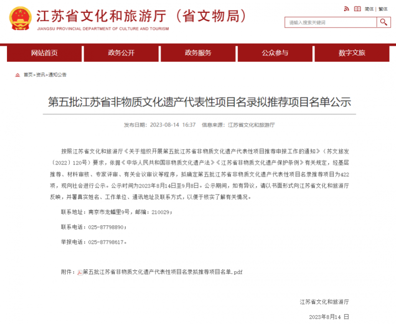 第五批江苏省非物质文化遗产代表性项目名录拟推荐项目名单公示,常州39项入围