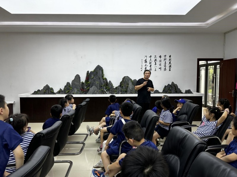 最后一站,孩子们来到孟河名仕园,欣赏特色非遗——斧劈石盆景。孩子们在一座座巧夺天工的斧劈石作品面前啧啧称赞,好似山水画卷展现在眼前。