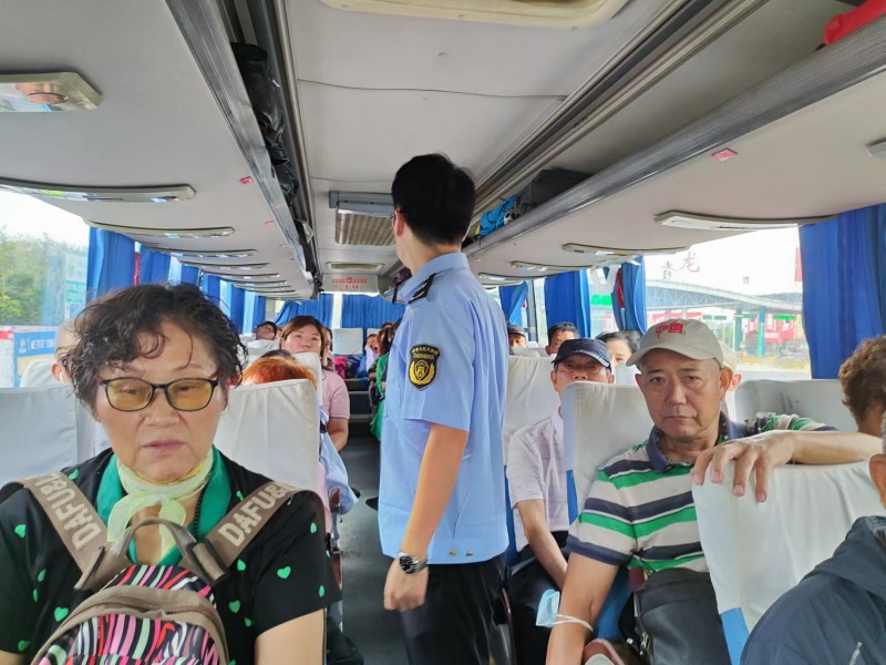 在沪蓉高速青龙收费站出口处,四部门执法人员对过往的客运车辆进行集中检查。市文化执法人员重点开展旅行社用车规范检查,对旅游包车客运车辆资质、车辆信息报备、旅游包车的包车合同、旅游合同、导游的导游证等进行查验对旅行社导游资质、旅游计划书等进行核查,并向旅游人员宣传讲解有关法律规定,督促选择有资质的旅游车辆、签订规范的旅游包车合同。行动中市交通执法部门现场查处安徽籍包车未签订包车合同案件1起。