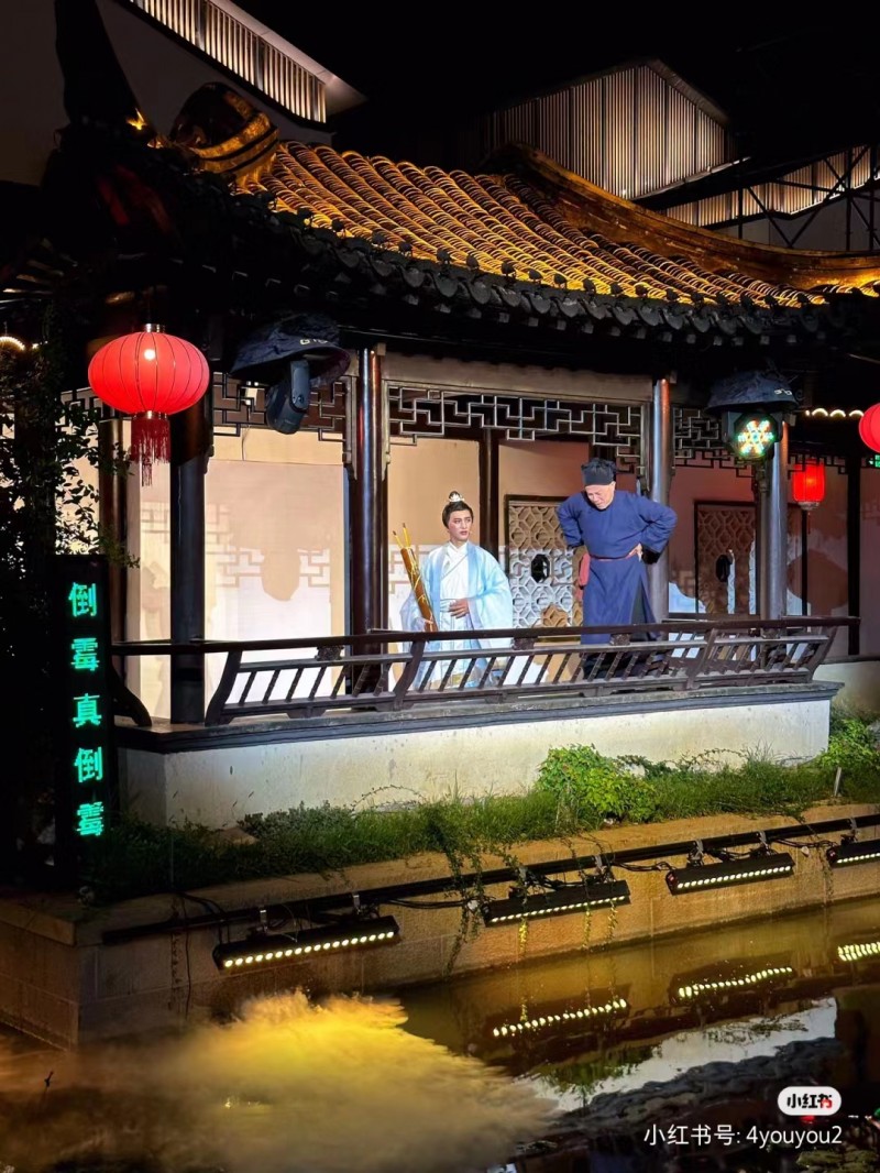 入夜后的半园,烟雾缥缈、灯光梦幻,一出沉浸式喜剧《半园·珍珠塔》旖旎登场,以山水花木为幕,以廊榭楼阁为台,跟随锡剧演员穿越古今,身临其境,在一唱一和、一颦一笑中释放压力,治愈心灵。