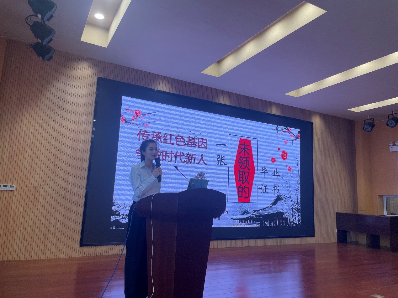 三杰纪念馆宣教员张京晶老师抑扬顿挫地讲述着,带领同学们走进微党课《一张未领取的毕业证书》。