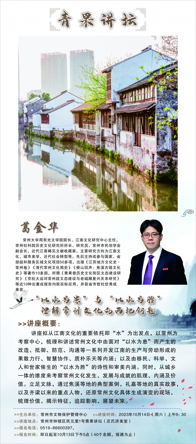 主讲题目:“以水为患”与“以水为胜”——理解常州文化的两把钥匙