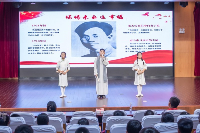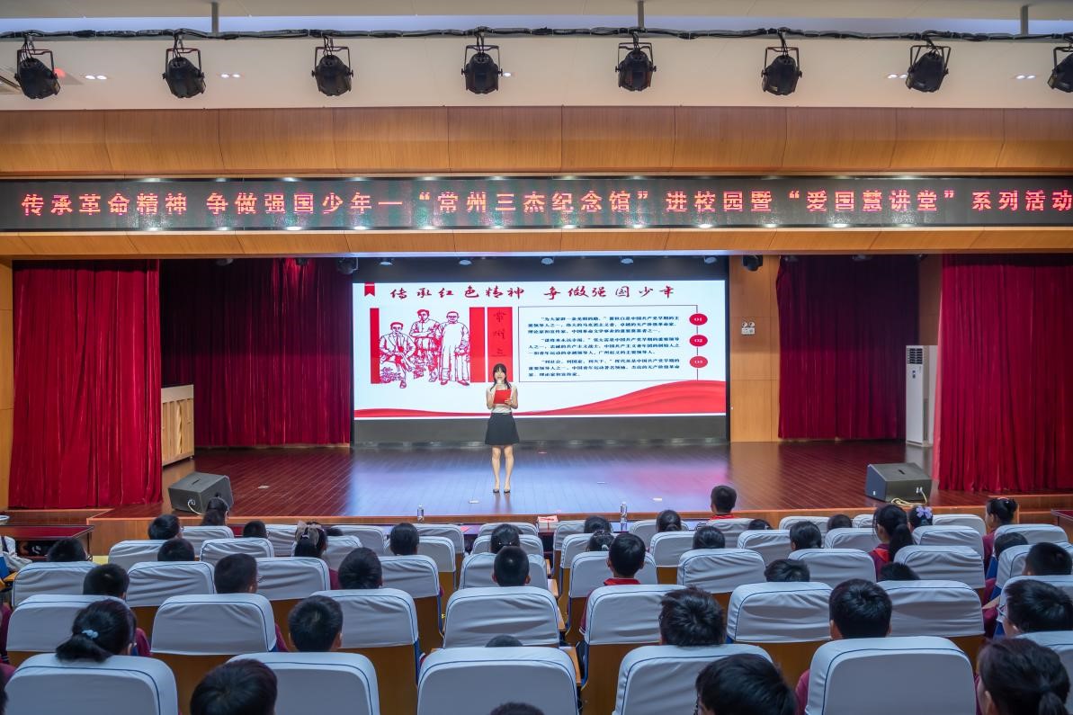 伴随着主持人铿锵有力的开场,常州市新北区飞龙实验小学吴伟校长对同学们寄予厚望,并深情地为同学们上了一堂“红色家风”课:“革命精神熠熠生辉,红色基因代代相传;未来属于青少年,希望寄予青少年;以瞿秋白、张太雷、恽代英为代表的“常州三杰”,是常州最宝贵的红色资源,传承“常州三杰”的革命精神,需要我们感悟赤诚初心,厚植“一切为了人民”的赤子情怀,赓续精神血脉,接续奋斗圆梦......”