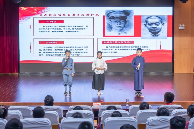 在学好红色故事的同时,常州三杰纪念馆还积极鼓励中小学生讲好红色故事,紧扣新时代少先队工作的要求,我馆”红领带“宣教队精心培养了一批红色故事“小小宣讲员”,帮助同学们从小树立责任感、使命感和荣誉感,用实际行动赓续红色血脉。活动现场常州三杰纪念馆“小小宣讲员”们声情并茂地为同学们讲述了瞿秋白、张太雷、恽代英的故事,一个个生动的红色故事在孩子们心中厚植爱党爱国情怀,同时在国庆来临之际,同学们通过一段段文字、一个个红色故事表达对祖国母亲深深的祝福。