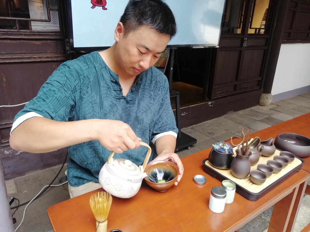 中国历史源远流长,有着悠久的茶文化。茶文化是中国传统文化古典雅致的重要体现,对于茶叶的热爱和茶文化的研究,似乎成为了中国人骨子里的一种浪漫主义情结。为提升活动趣味性和互动性,常州三杰纪念馆王科老师除介绍茶文化起源和发展外,还演绎了唐朝烹茶、宋朝点茶、明朝泡茶三个时期不同的制茶方式,讲解茶文化的历史变迁,带领小茶童制作茶饮,学习赏茶、沏茶、持杯、奉茶等制茶技巧和茶道礼仪。