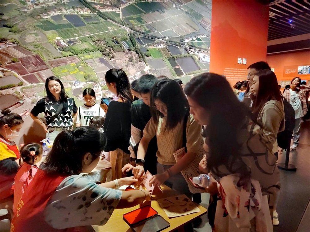 此外,常博还准备了不少活动丰富游客的中秋国庆假期。常博“登月”计划,小游客们在诗词歌赋中话中秋,寻找展厅里的中秋元素,自己动手制作陶艺趴趴兔。“智造三星村”展厅流动课堂,志愿者化身“三星村遗址守护人”,围绕“此豆非彼豆——揭秘云雷纹陶豆”“琢磨成器——石钺的前世今生”“是密码还是纹样——神秘的刻纹骨版”等三个主题,透过现代科技的视角,通过知识讲解、道具演示、头脑风暴等多种形式为观众揭秘三件国家一级文物背后蕴含的科学原理,一窥先民们的智慧生活。“遥想三星村”常设体验活动,常州博物馆原创设计纪念章、拼图、拓印等体验项目,让观众直观了解金坛三星村出土文物的纹饰、形制以及功用,在将博物馆记忆带回家的同时,进一步认识三星村遗址在文化交汇下的独特性、文明发展中的创新性和历史进程中的关键性。