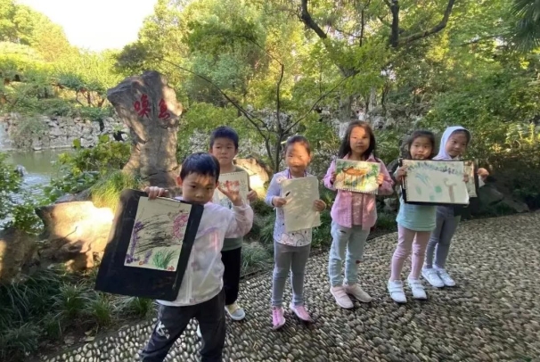 10月4日下午,由常州市文化馆主办,常州市文化馆FunHouse分馆承办的“艺术家在常州——研学盲盒系列:东坡公园”在常州东坡公园开展。始建于1954年的东坡公园,有着浓厚的文化底蕴,是常州千年文化情感的流露。园内古树参天、环境古朴典雅、文物古迹多处,能找到许多与苏东坡有关的景点:舣舟亭、仰苏阁、洗砚池、怀苏庭……小朋友们从艺术的角度,了解常州的园林以及园林的表现形式,同时赏析园林中风景的组成元素,最后独立完成独具特色的园林作品。在实景中感受自然园林中的艺术表达,享受沉浸式艺术创作过程。
