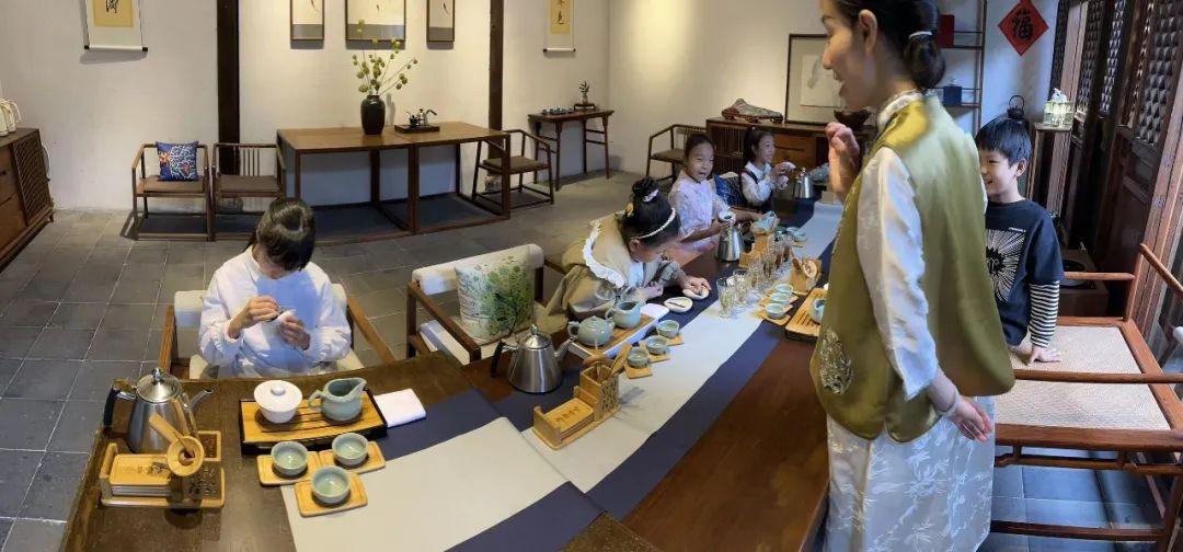 国庆茶艺之旅于10月4号下午2点在青果巷松健堂如期举行,8组亲子家庭济济一堂,活动从少儿习茶开始,让少儿从温杯、投茶、注水、出汤,每一个环节由心而发,从生疏到行云流水,孩童们在无忧的茶香里感受千年茶文化及岁月静美!