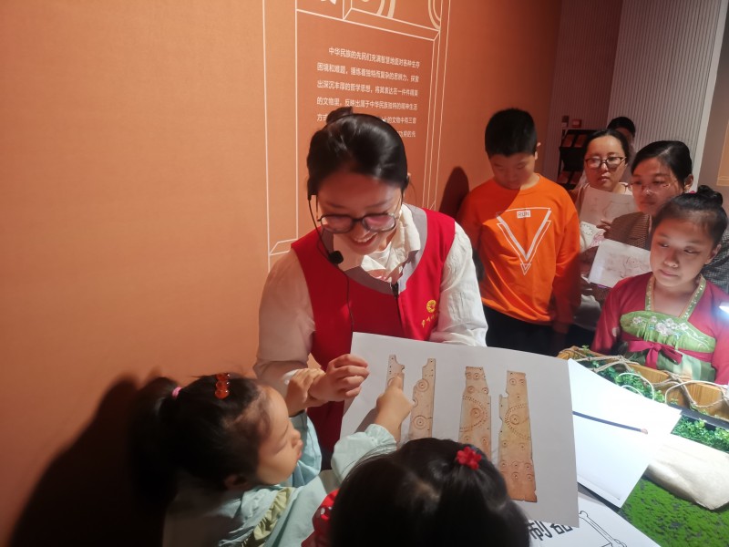 “遥想三星村”常设体验活动以展品为原型,原创设计纪念章、拼图、拓印等体验项目,让观众直观了解金坛三星村出土文物的纹饰、色彩及造型,在将博物馆记忆带回家的同时,进一步认识三星村遗址在文化交汇下的独特性、文明发展中的创新性和历史进程中的关键性。
