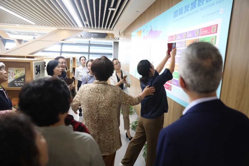 自1999年9月常州和南杨州正式结好以来,两市持续多年开展互访交流活动,此次是疫情后南杨州派遣的第一个来访代表团。为更好展示近年来常州妇女儿童工作的创新发展,首站便选在了市图书馆。代表团一行依次参观了负一层至十层功能区域,馆长钱竑结合“友城会客厅”、“少儿借阅区”、“科普馆”等服务设施,简要介绍了常图对外交流和儿童阅读推广经验。