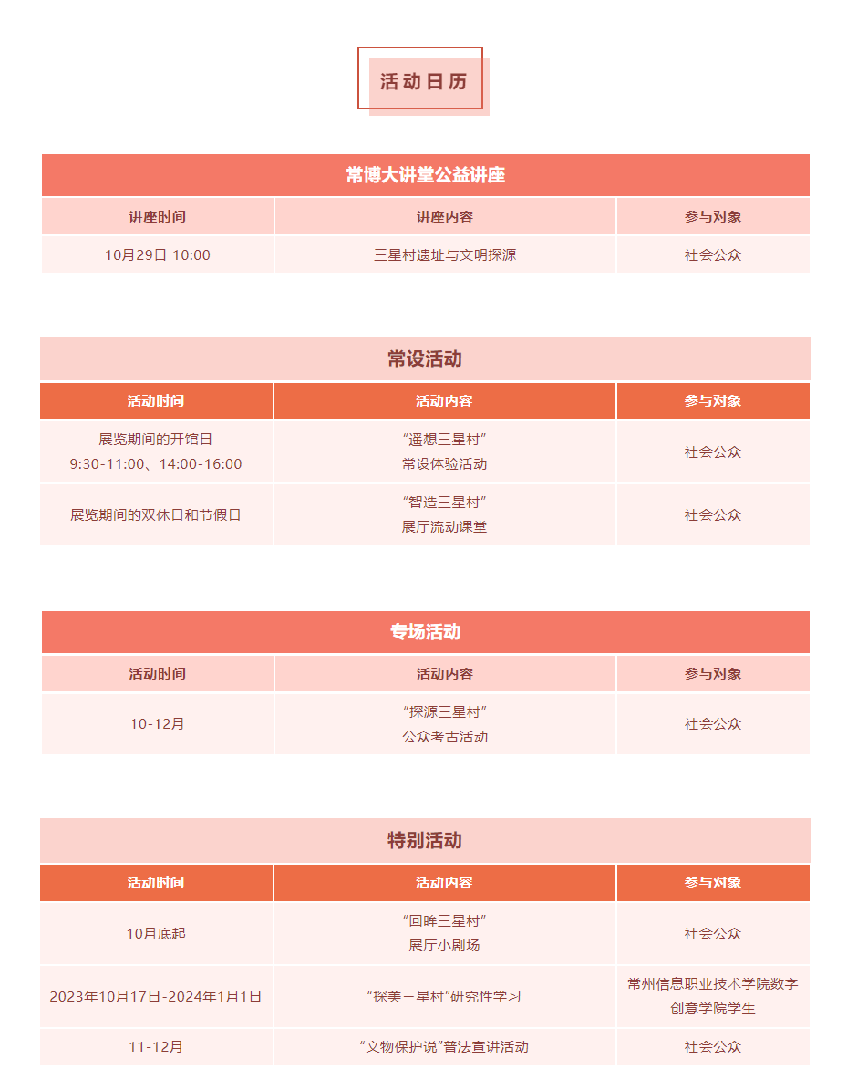 活动地点:“三星眩耀——金坛三星村遗址特展”和二楼启明星活动中心