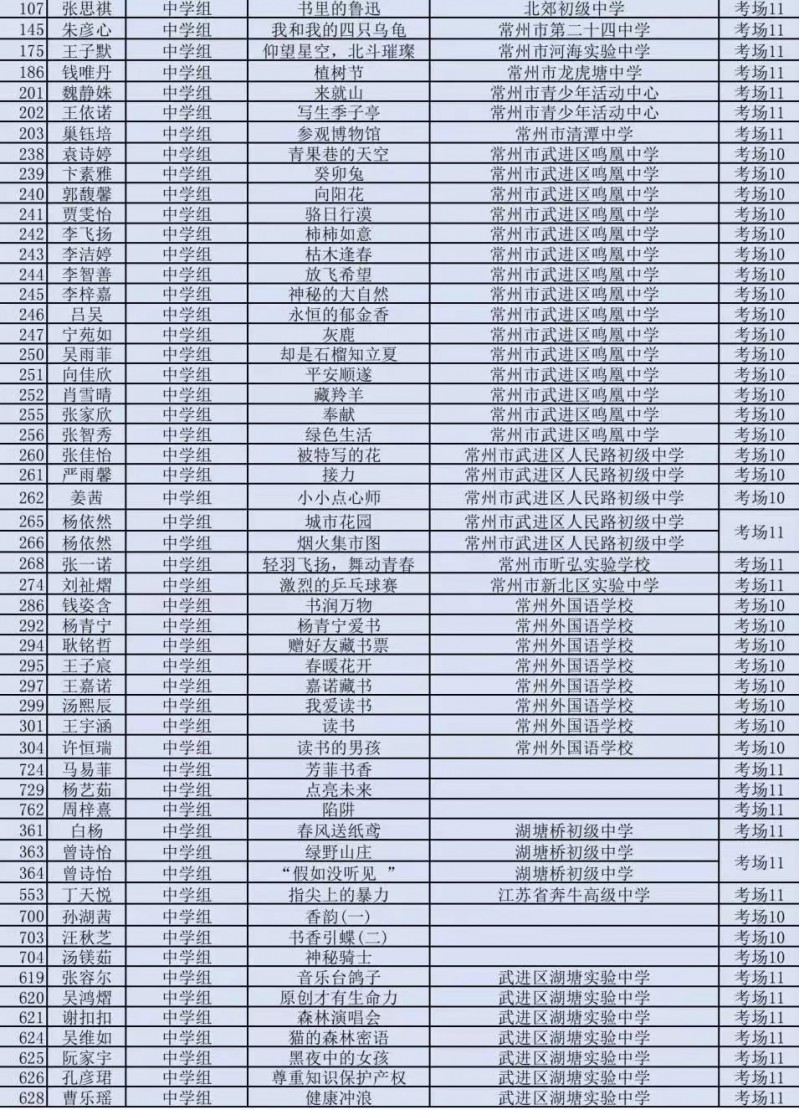 附件1:“绿书签•版刻成长”常州市第二届青少年藏书票大赛-——现场决赛名单