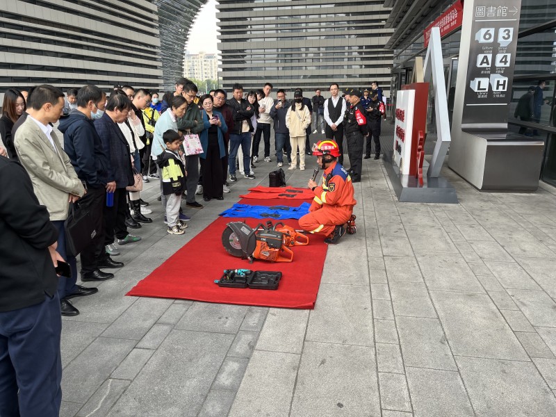 最后在文化广场上由消防员展示消防救援器材,参会人员现场观摩消防应急演练,学习对火情火警的研判与处置等知识。