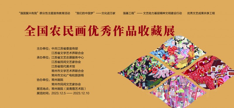 为深入学习贯彻党的二十大精神和习近平文化思想,聚焦全面推进乡村振兴主题,展现新征程上广大农民自信自强、建设美好家园的良好精神风貌,由中共江苏省委宣传部、江苏省文学艺术界联合会主办,江苏省文艺志愿服务中心、江苏省民间文艺家协会、江苏省现代美术馆承办的优秀文艺成果共享工程——全国农民画优秀作品收藏展在常州画院(吴青霞艺术院)展出。